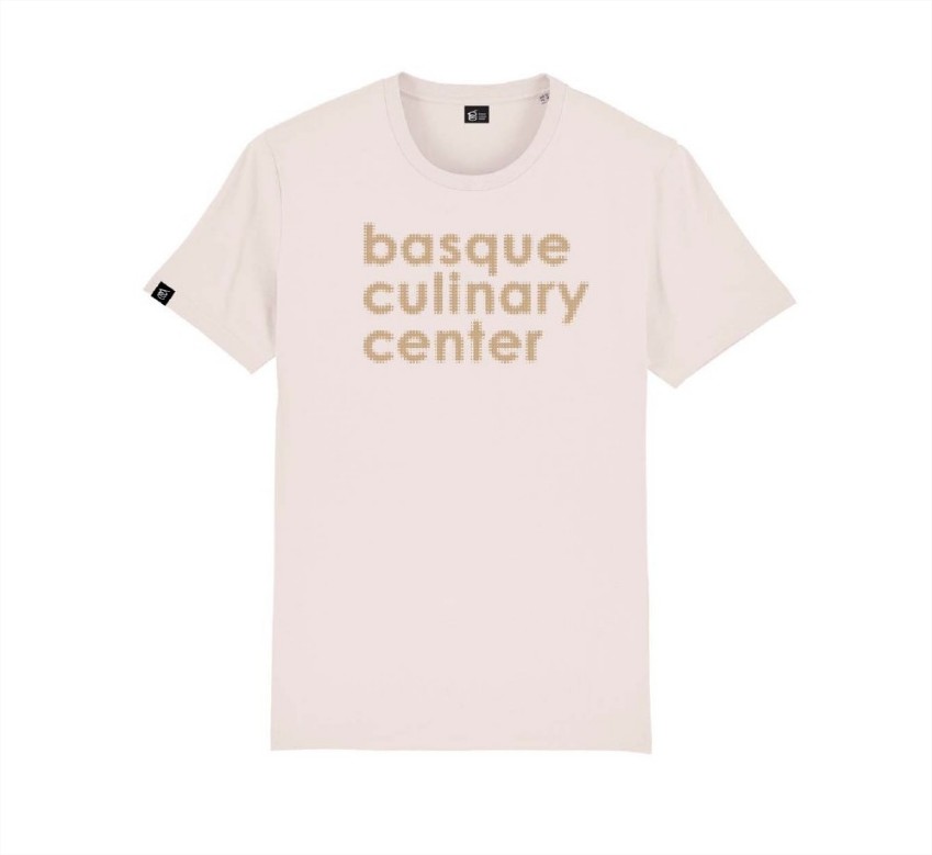 Camiseta de manga corta y cuello redondo. Camiseta de color vintage white con estampado de un gráfico de 'Basque Culinary Center' contrastado en el frente. Detalle del logotipo de Basque Culinary Center en el interior y etiqueta negra cosida en la manga derecha.