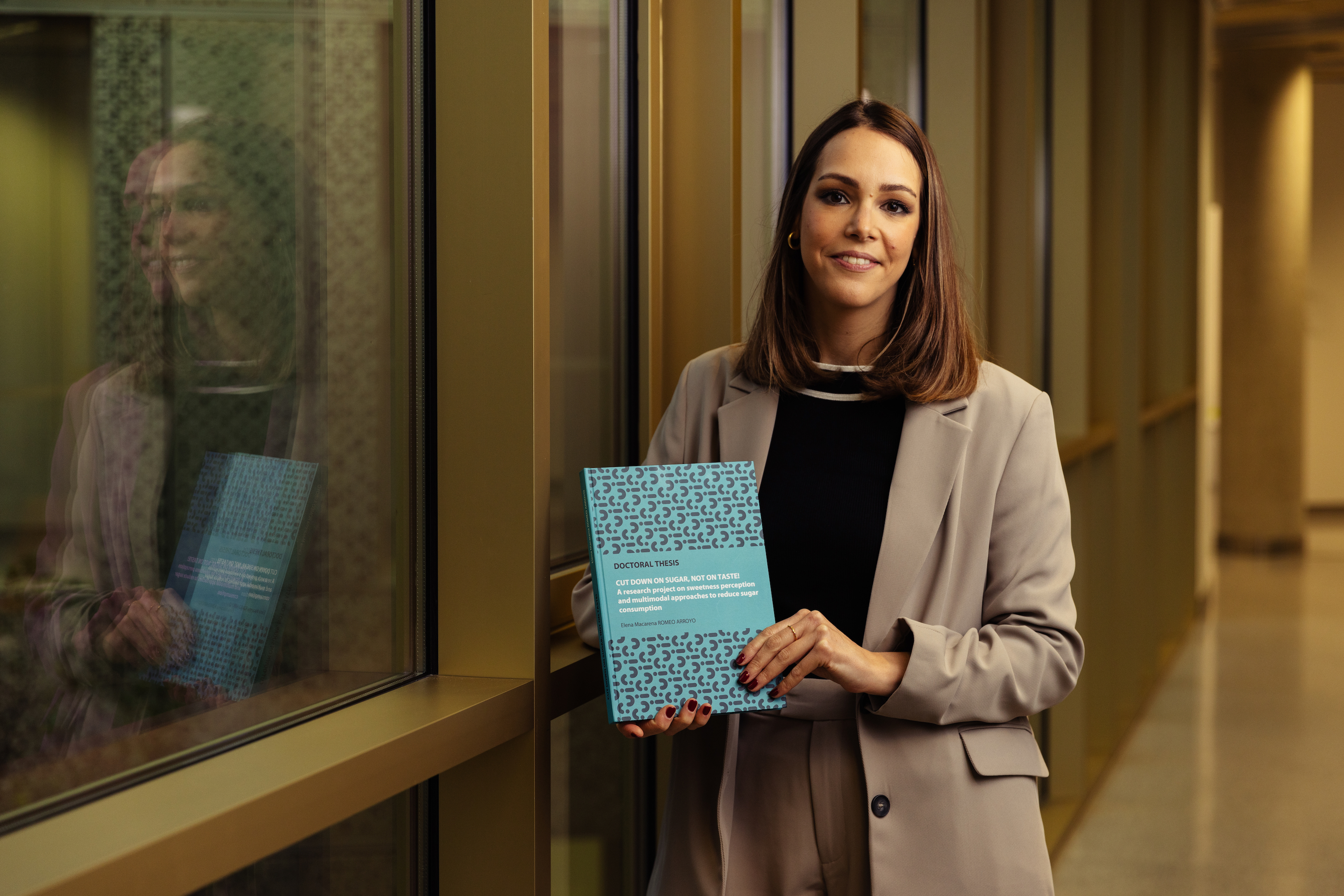 Elena Romeo Arroyo da Gastronomia Zientzietako nazioarteko lehen doktorea, gaur Basque Culinary Centerren bere doktore-tesia defendatu ondoren, azukrearen pertzepzioaren azterketari eta haren kontsumoa murrizteko estrategia multimodalen diseinuari buruzkoa.