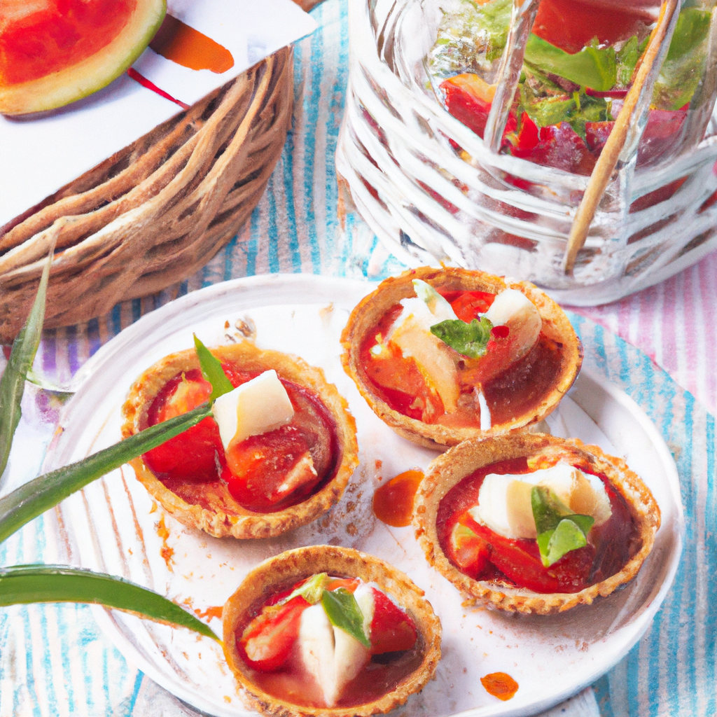 Entrante: Tartaletas de gazpacho de sandía y fresas con queso de cabra y reducción de vinagre balsámico