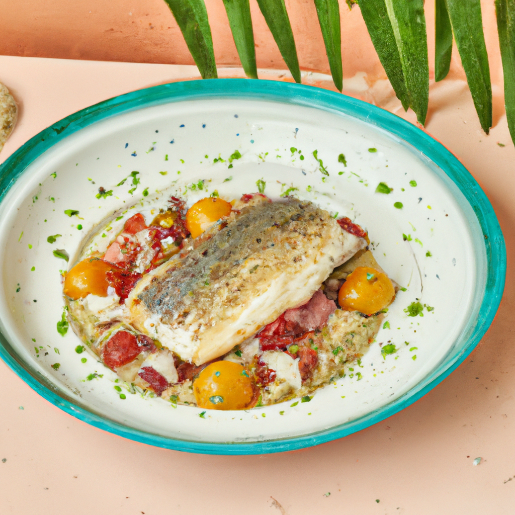Coloca los lomos de lubina en una bandeja para hornear ligeramente engrasada y hornea durante aproximadamente 15-20 minutos, o hasta que estén cocidos y la costra esté dorada y crujiente.