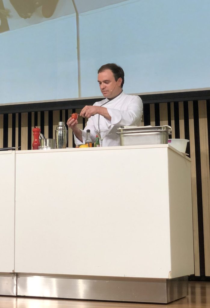Además, Jon Basterretxea, chef investigador del equipo de BCC Innovation, ha desarrollado un show-cooking en el que explica algunas opciones para incluir más verduras en la alimentación diaria con algunos platos como: tartar de tomate, zanahorias en sal como “coleslaw” o escabeche, risotto de coliflor con especias, además, explicó otros usos para las diferentes partes del tomate, como las semillas y el agua.