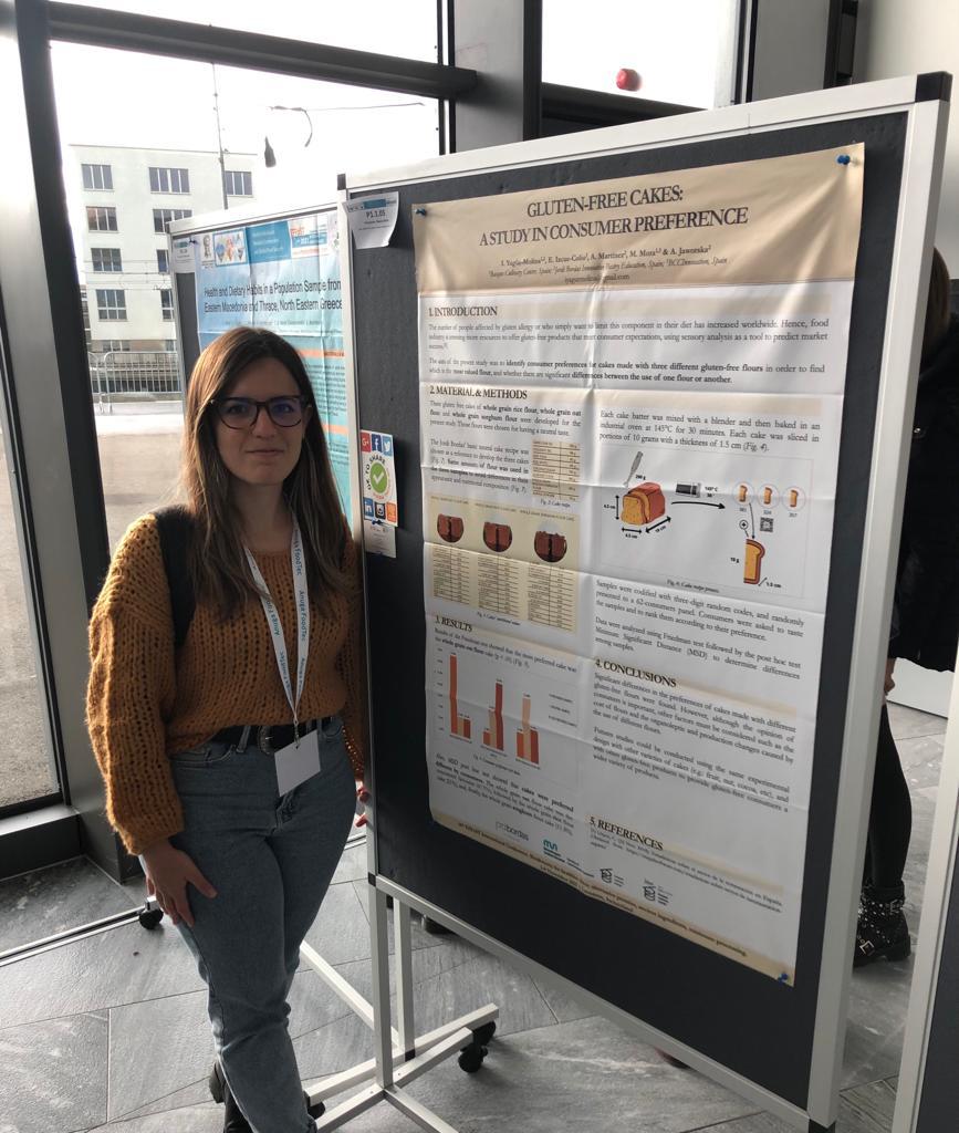 María Mora, presentó el póster "Bizcochos sin gluten: un estudio sobre las preferencias del consumidor", cuyo objetivo ha sido identificar las preferencias de los consumidores en cuanto a tres bizcochos elaborados con tres harinas sin gluten diferentes: arroz, avena y sorgo. En este proyecto de investigación se estudió cuál era la harina preferida por los consumidores y si existían diferencias significativas entre el uso de una harina u otra.
