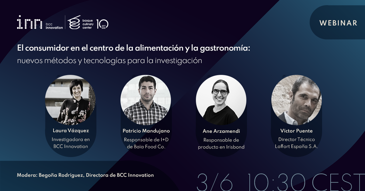 Este webinar en abierto organizado por BCC Innovation el 3 de junio contó con los expertos Ane Arzamendi de Irisbond, Víctor Puente de Laffort España, Patricio Mandujano de Baïa Food  y Laura Vázquez de BCC Innovation