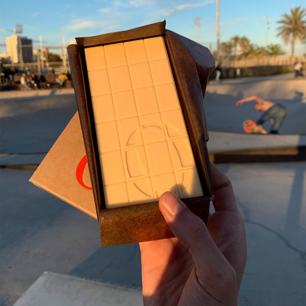 Como te decía, nos hemos comido lo que nos ha dado la industria, y hay mucho camino por recorrer. El año pasado saqué una tableta de mucílago y ni siquiera sé si le puedo llamar chocolate y ponerlo a la venta porque luego me puede caer una multa. La legislación europea te dice que solo lo puedes llamar chocolate cuando tiene un cierto porcentaje de azúcar.  El mucílago es la pulpa o membrana del fruto del cacao que recubre las semillas con las que tradicionalmente se elabora el chocolate. Contiene los azúcares necesarios para la fermentación de las semillas o habas de cacao. Su sabor es alucinante, pero es algo que no llega hasta nosotros. Es fresco, floral y lácteo, parecido al lichi, a la chirimoya, o la ciruela, y cremoso como el yogur. Cuando saqué esta tableta, hubo quien dijo que era el “quinto chocolate”, después del negro, el chocolate con leche, el blanco y el rosa o “Ruby” que lanzó la empresa Barry Callebaut. Si llamamos chocolate al chocolate blanco, ¿por qué no podemos llamar a este otro chocolate de mucílago? Es un tema que he comentado con los publicistas Toni Segarra y Luis Cuesta, que han sido clientes míos desde el principio. Toni me decía que esto es 100% cacao, pero 0% chocolate, lo que puede quedar muy bien. Quiero presentarlo a un concurso a finales de año, pero es que ni siquiera hay una categoría para él. En fin, lo presentaré en cualquier otra a ver si cuela… En cualquier caso, se pueden hacer muchas cosas. Lo mágico del chocolate es la manteca de cacao, que es lo que da forma a la tableta. Y se funde a la temperatura corporal, 36 grados… Es realmente mágico.