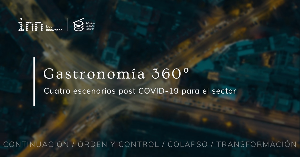 La crisis generada por el coronavirus ha remarcado que nos encontramos inmersos en momentos de gran incertidumbre. BCC Innovation ha desarrollado el informe: “Gastronomía 360º: Cuatro escenarios post COVID-19 para el sector”. Se trata de un informe cuyo objetivo no es predecir el futuro, sino ayudar a pensar y explorar la complejidad de los nuevos contextos, analizando el panorama socioeconómico actual y proyectando escenarios para los meses y años posteriores al contexto COVID-19. Se trata de aportar visión y reflexión para ayudar a las empresas y actores de la cadena de valor de la gastronomía a afianzar su competitividad y resiliencia impulsando actuaciones innovadoras.