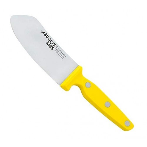 Cuchillos KIDS Basque Culinary Center en colaboración con Arcos. Este cuchillo es perfecto para que los más pequeños de la casa puedan echar una mano en cocina gracias mango de plástico hecho a medida y su hoja más ancha de lo habitual para que puedan manejarlo cómodamente. Además, los cuchillos están grabados con el logotipo de Basque Culinary Center en una cara de las hojas.